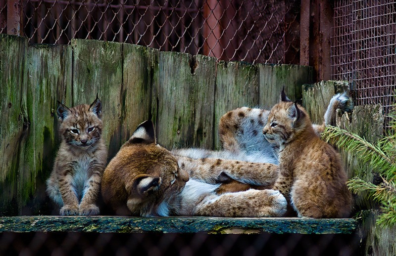 Снимок сделан сквозь сетку ограждения. Чтобы ее как-то скрыть, выбрал стекло с фокусным побольше и фокус конечно на рыси. А также потом пришлось задирать контраст до предела, благо блеклая картинка с использованного объектива позволяет это делать (Владимиру привет ;)) Вот как убрать эту размытую сетку на пп? Где-то встречал похожее решение с копированием в новый слой, редактирование, потом сведение с нужными параметрами, но вникнуть не могу никак...