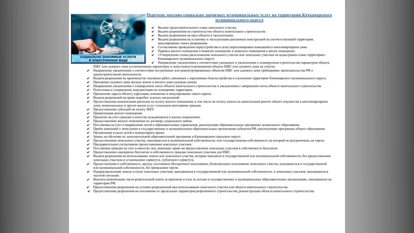 Перечень массово социально значимых муниципальных услуг на территории Качканарского муниципального округа
