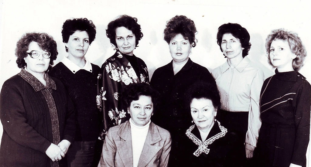 Изображение: Точная дата неизвестна, ориентировочно 1988 годКРЗ. Качканар. Форманта. Отдел кадров радиозавода. 1988 год.Слева направо:стоят - Боровская Т.И., Стрелкова Л.Д., Коренева А., Брагина З.А., Швайбович Р.С., Дучева Л.И.сидят - Галина Плесовских, Шкараденок Н.Н. Из архива Ивана Канисева