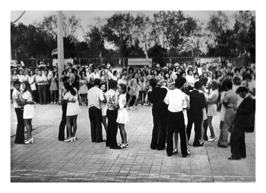 Качканар. Дом культуры Строитель. Середина-конец 1960 годов. Слева от входа между двух женщин стоит Богатырёв Анатолий Николаевич. Из архива Ивана Канисева
