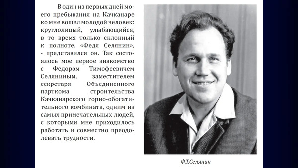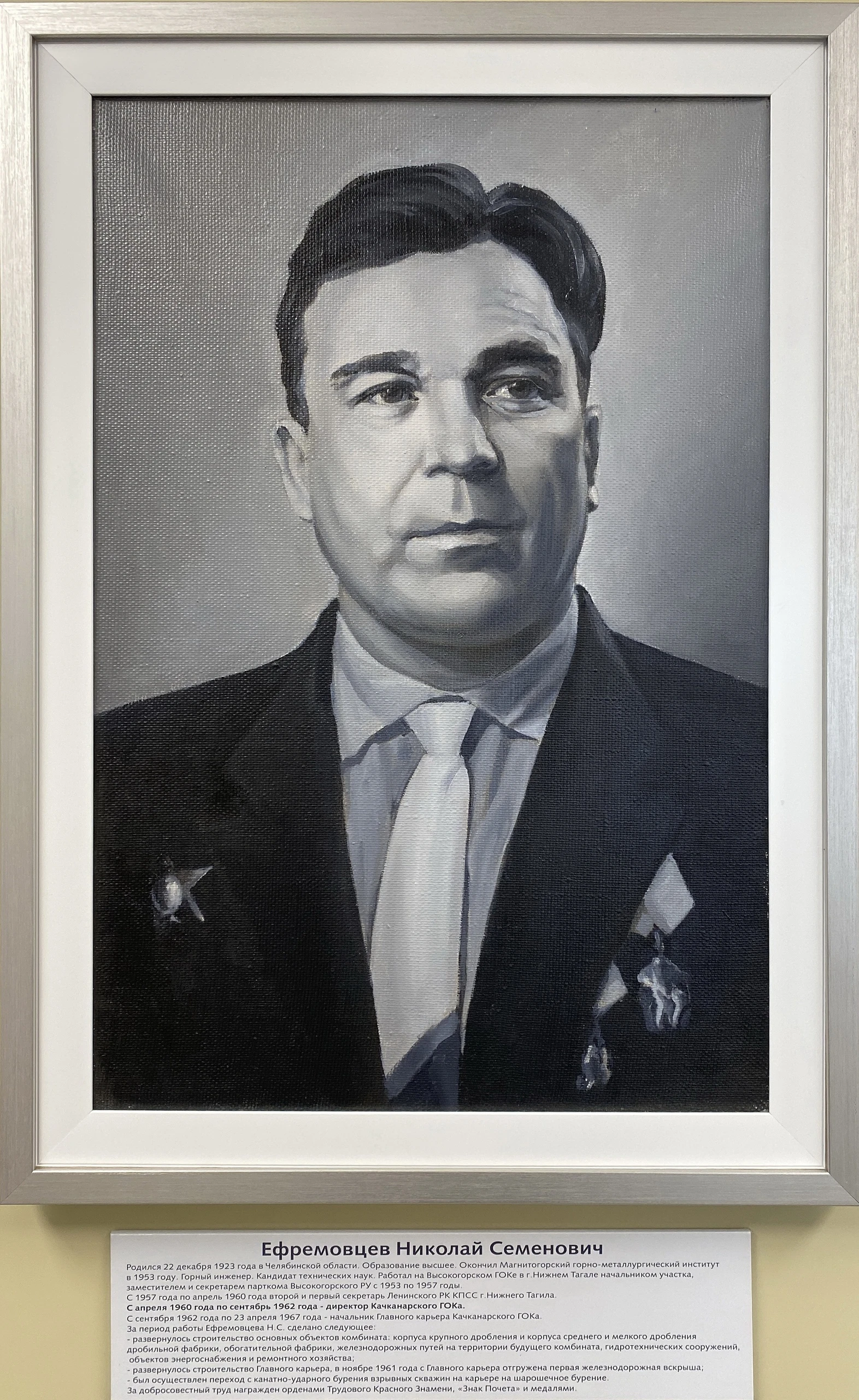 Ефремовцев Николай Семенович. Родился 22 декабря 1923 года. С апреля 1960 года по 1962 год директор КГОКа. Качканар. С сентября 1962 года по 23 апреля 1967 года - начальник Главного карьера КГОКа. Из архива Ивана Канисева