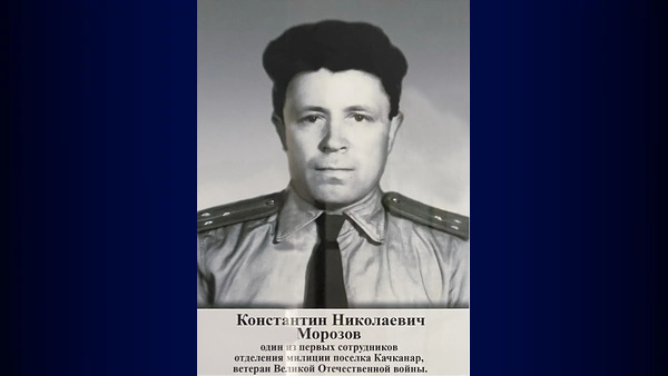 Морозов Константин Николаевич - один из первых сотрудников отделения милиции поселка Качканар. Ветеран Великой Отечественной войны. 1960-е годы. Из архива Ивана Канисева