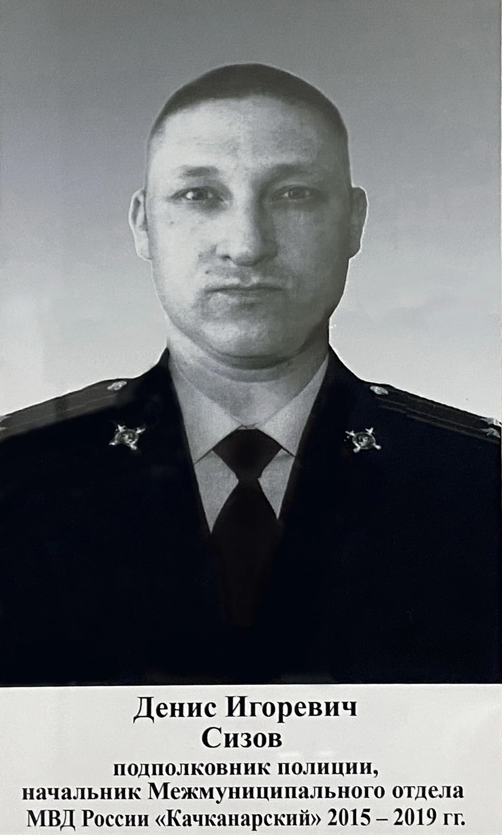 Денис Игоревич Сизов - подполковник полиции, начальник Межмуниципального отдела МВД России "Качканарский". 2015-2019 годы. Из архива Ивана Канисева