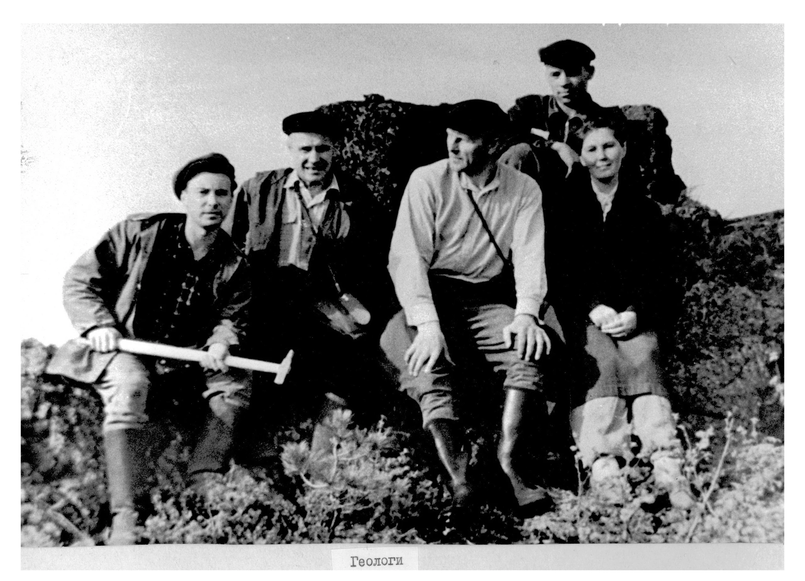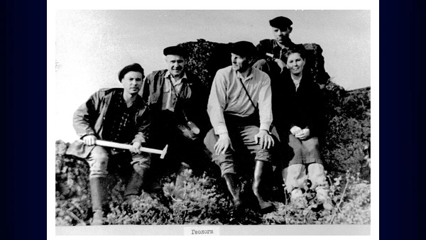 Спиркин Николай Лаврентьевич - секретарь комитета ВЛКСМ треста Качканаррудстрой (справа) с молодыми строителями. 1960 годы. Качканар. Из архива Ивана Канисева
