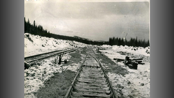 Железнодорожные пути на подходе к станции Качканар. 1958 г.