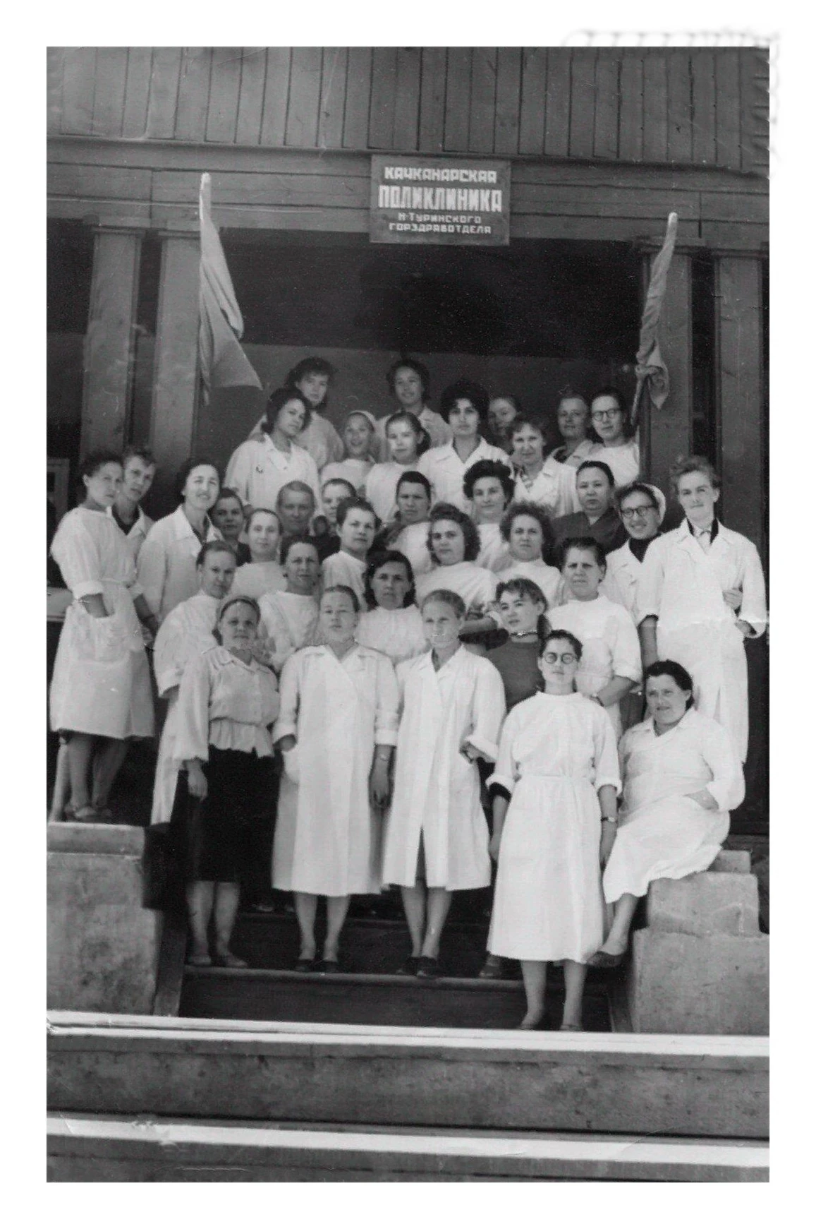 Поселок Качканар. Открылась первая амбулатория. Здесь работали Рыбникова Нина Михайловна - фельдшер 1957 г. и Суходоева Людмила Федоровна - врач. 1958 год. Из архива Ивана Канисева