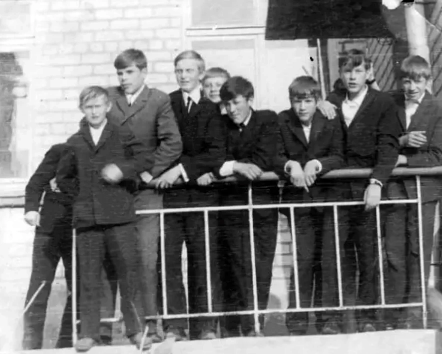 Изображение: Точная дата неизвестна, ориентировочно 1970 годКачканар. Школа №4.13.06.1970 года. Выпускной вечер 8-Г класса. Виктор Собко, Николай Павловский, Владимир Собко, Михаил Смирнов, Владимир Пыльнов, Александр Ряков, Александр Аняцик, Николай Новиков. Из архива Ивана Канисева
