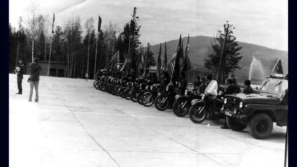 Качканар. ГОВД. Перед дежурством ДНД автобазы №5. Инструктаж дает А.А.Черняков. 1975 год. Из архива Ивана Канисева