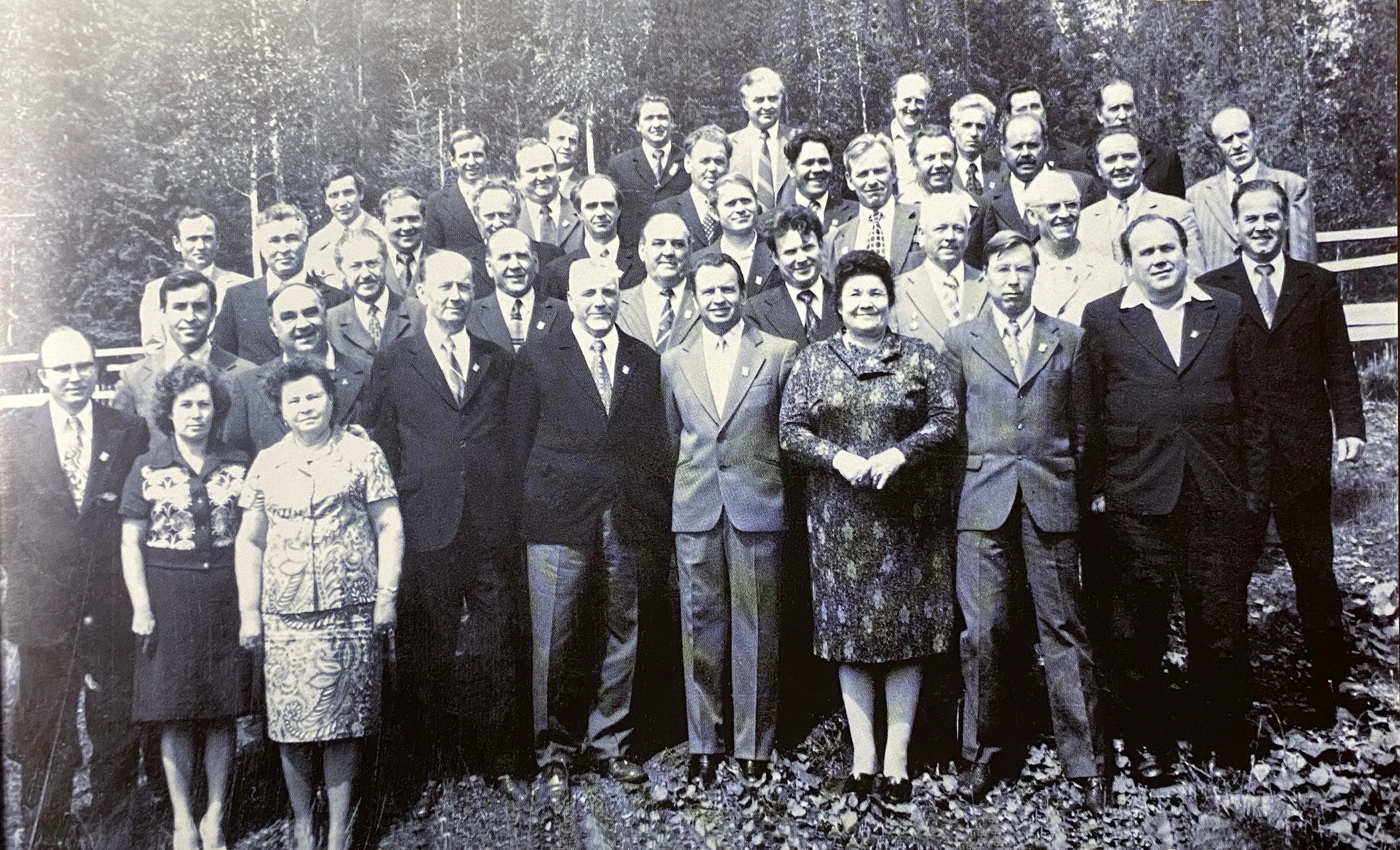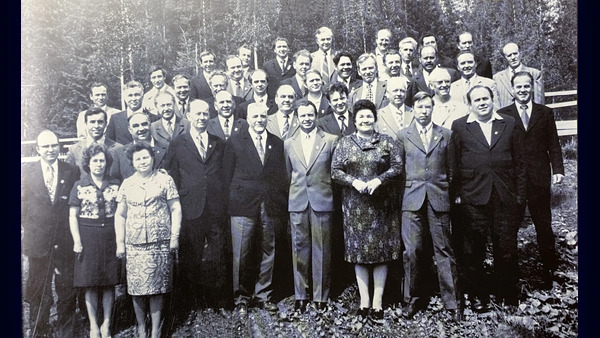 Качканар. 1977 год. 20-летний юбилей Качканара. 1-й ряд крайний слева Н.Л.Спиркин. 2-й ряд в центре Д.И.Гикалов - 1-й секретарь горкома КПСС, справа о него 1-й председатель горисполкома Клавдия Павловна Сухенко, рядом с ней В.Ф.Миронов и Ф.Т.Селянин.Слева от Гикалова стоит 1-й управляющий трестом Качканаррудстрой [...]