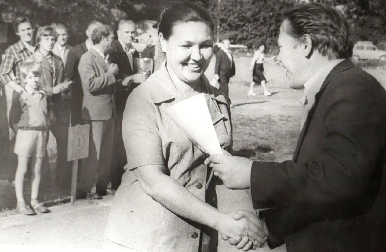 Качканар. КРЗ. Форманта. 1978 год. На головном заводе в Свердловске команда ДПД КРЗ заняла 1-е место.Тамара Белова получает грамоту. Из архива Ивана Канисева
