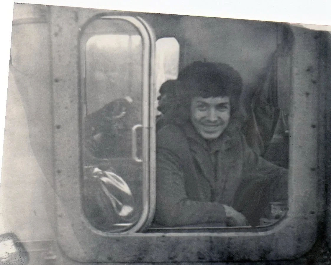 Качканар. КГОК. УГЖДТ. ЦТП. Равиль Шарафутдинов. Март 1978 года. На заднем плане машинист электровоза Берг Николай. Из архива Ивана Канисева