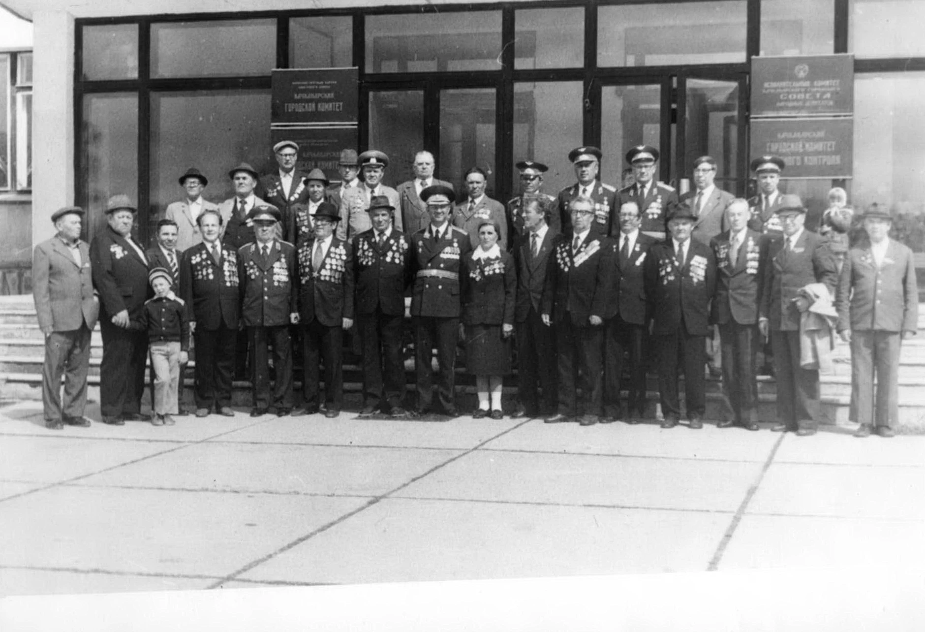 Качканар. У здания горкома и горисполкома. Ветераны ВОВ. 1980-е годы. Из архива Ивана Канисева