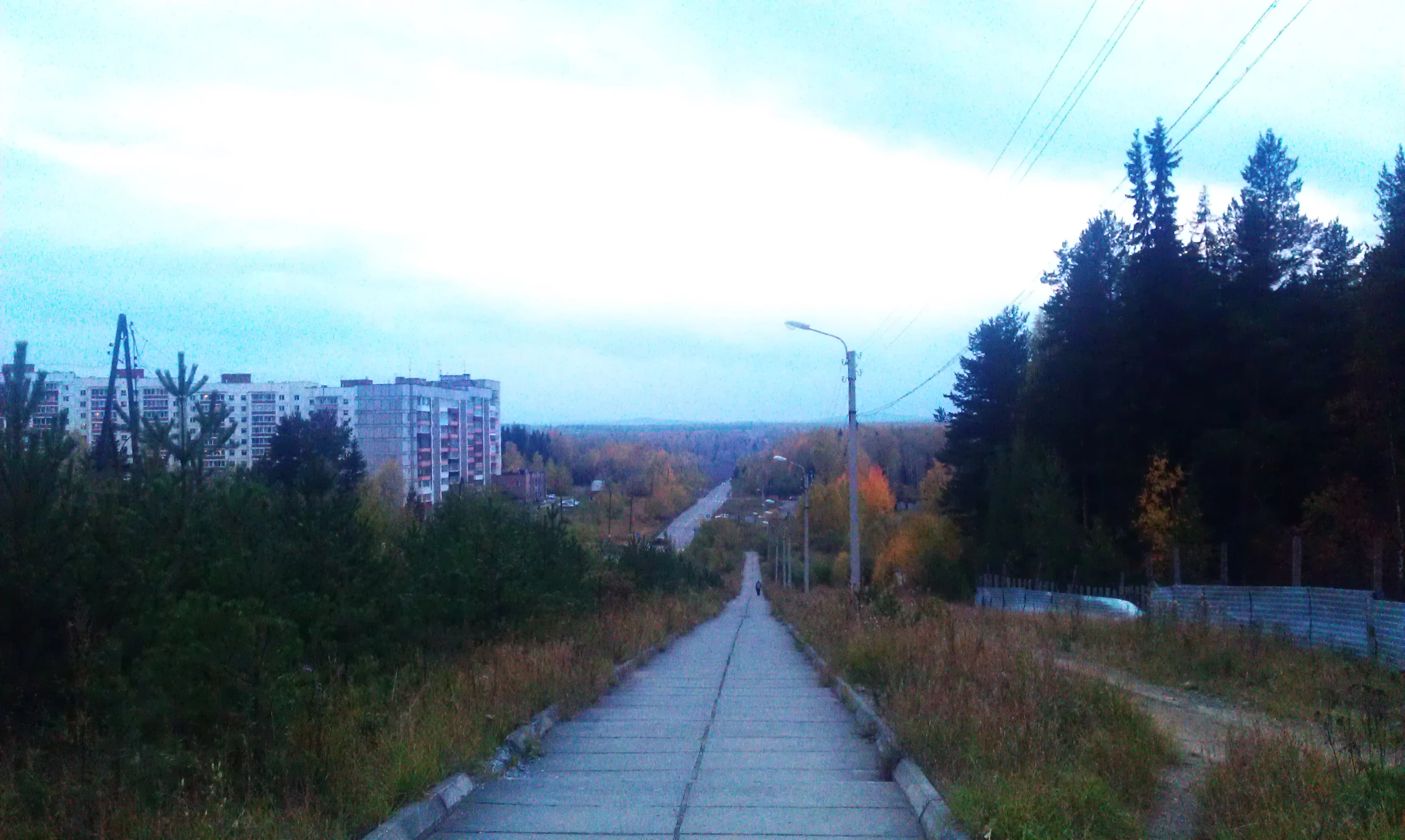 Из домашнего архива Степана Ганюшкина. 20 сентября 2014, возможно. Пешеходная дорожка вдоль автомобильной дороги. ниже трамвайного кольца