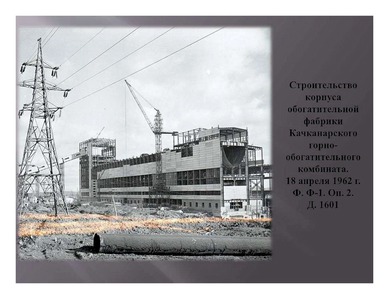 19620000000037unknown.webp, Автор не известенСтроительство корпуса обогатительной фабрики Качканарского горно-обогатительного комбината. 18 апреля 1962 года. Ф.Ф-1. Оп.2 Д.1601 Из архива Ивана Канисева