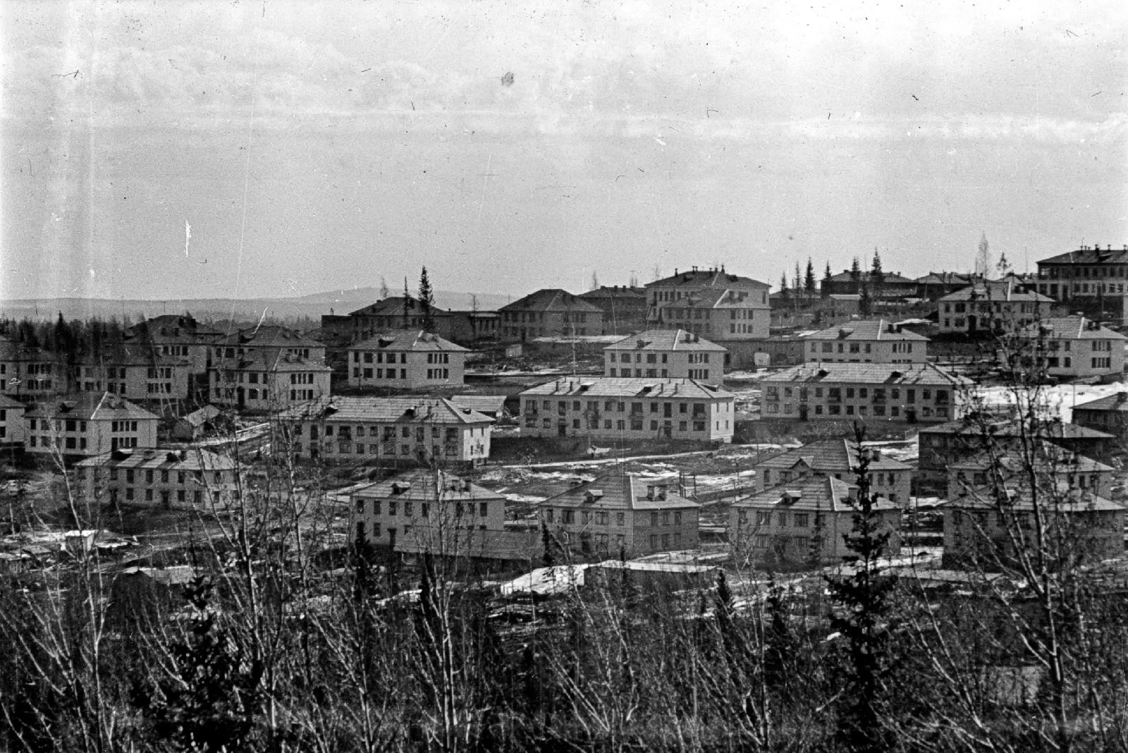 19630000000038unknown.webp, Автор не известенКачканар. Первомайка. Фото до 1963 года. Построена столовая, но еще не достроен магазин. Из архива Ивана Канисева