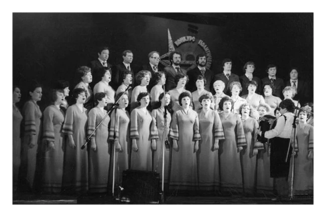 19800000000067unknown.webp, Автор не известенХор радиозавода (КРЗ) Форманта. 1980-е годы. Качканар. Конкурс политической песни. Из архива Ивана Канисеваphash: 13716249950889100326