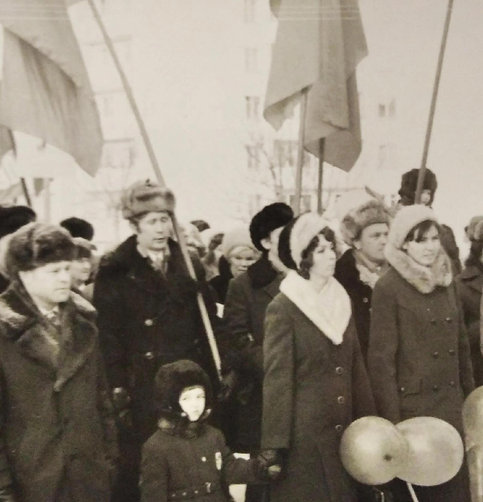 Качканар. КРЗ. Форманта. 7 ноября 1978 года. Демонстрация на день праздника Великой Октябрьской социалистической революции 1917 года. Вторая справа Ольга Павловна Бараненкова (Келина) с сыном Андреем. Из архива Ивана Канисева