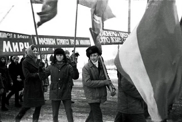 19700000000029unknown.webp, Автор не известен1 мая. 1970-80 годы. Школа №2. Качканар. Первомайская демонстрация. Из архива Ивана Канисеваphash: 10870260396178810113
