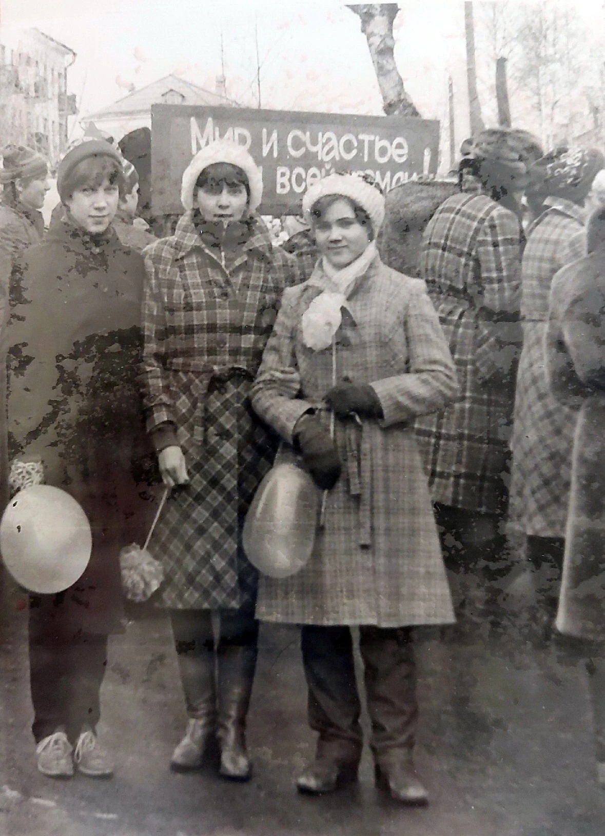 19800000000112unknown.webp, Автор не известенКачканар. 1 мая, 1980-е годы. Лариса Князева, Марина Крюкова, Светлана Огнёва. Из архива Ивана Канисеваphash: 13441803284679612781