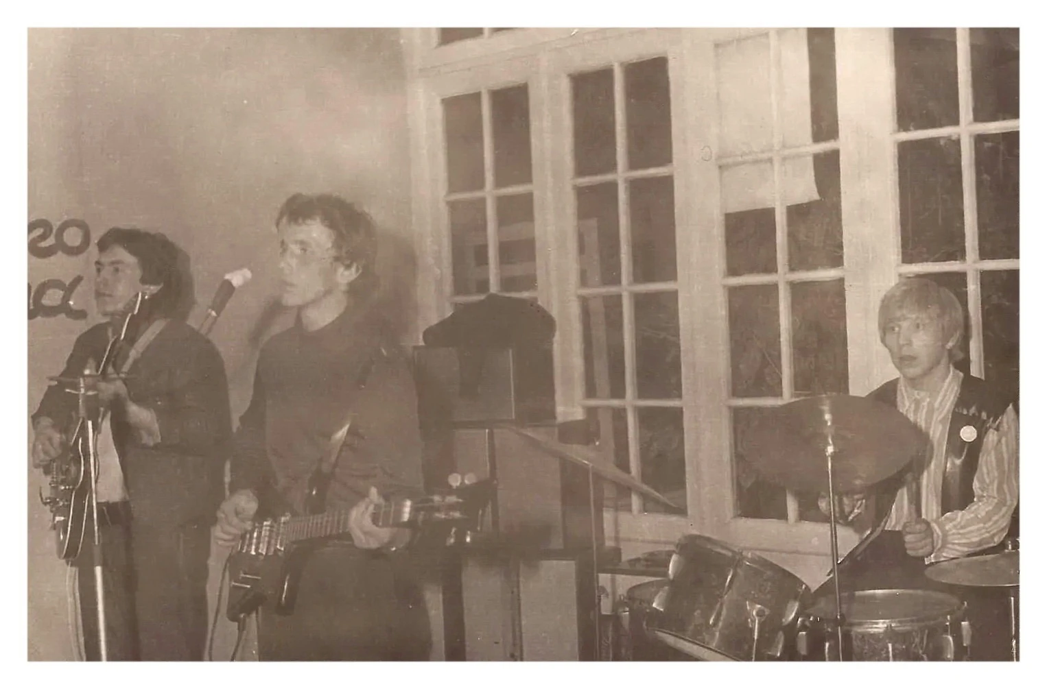 19800000000366unknown.webp, Автор не известенВИА ЭРА на халтуре на Первомайке. Слева-Сергей Грицков, Андрей Зонов, барабанит Александр Кундеревич-Беньдер. Качканар. 1980-е годы. Из архива Ивана Канисева