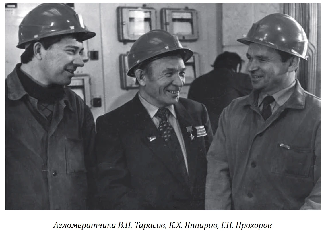 19800000000374unknown.webp, Автор не известенКачканар. КГОК. Фабрики. Агломератчики В.П.Тарасов, К.Х.Яппаров, Г.П.Прохоров. 1980-е годы. Из архива Ивана Канисева