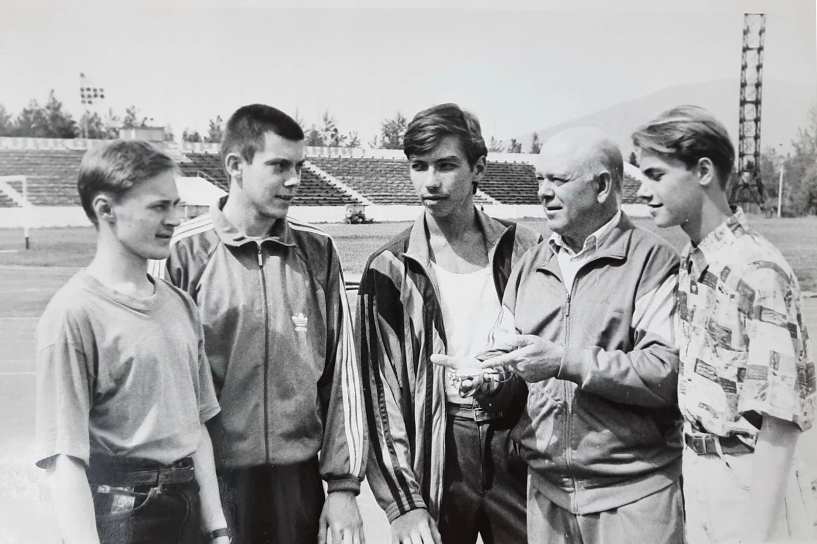 19800000000447unknown.webp, Автор не известенКачканар. Стадион Горняк. 2-й справа Качканар. Александр Сергеевич Грехов - тренер сборной команды многоборцев. 1980-90-е годы. Председатель спортивного клуба "Горняк", ветеран спорта. Из архива Ивана Канисева