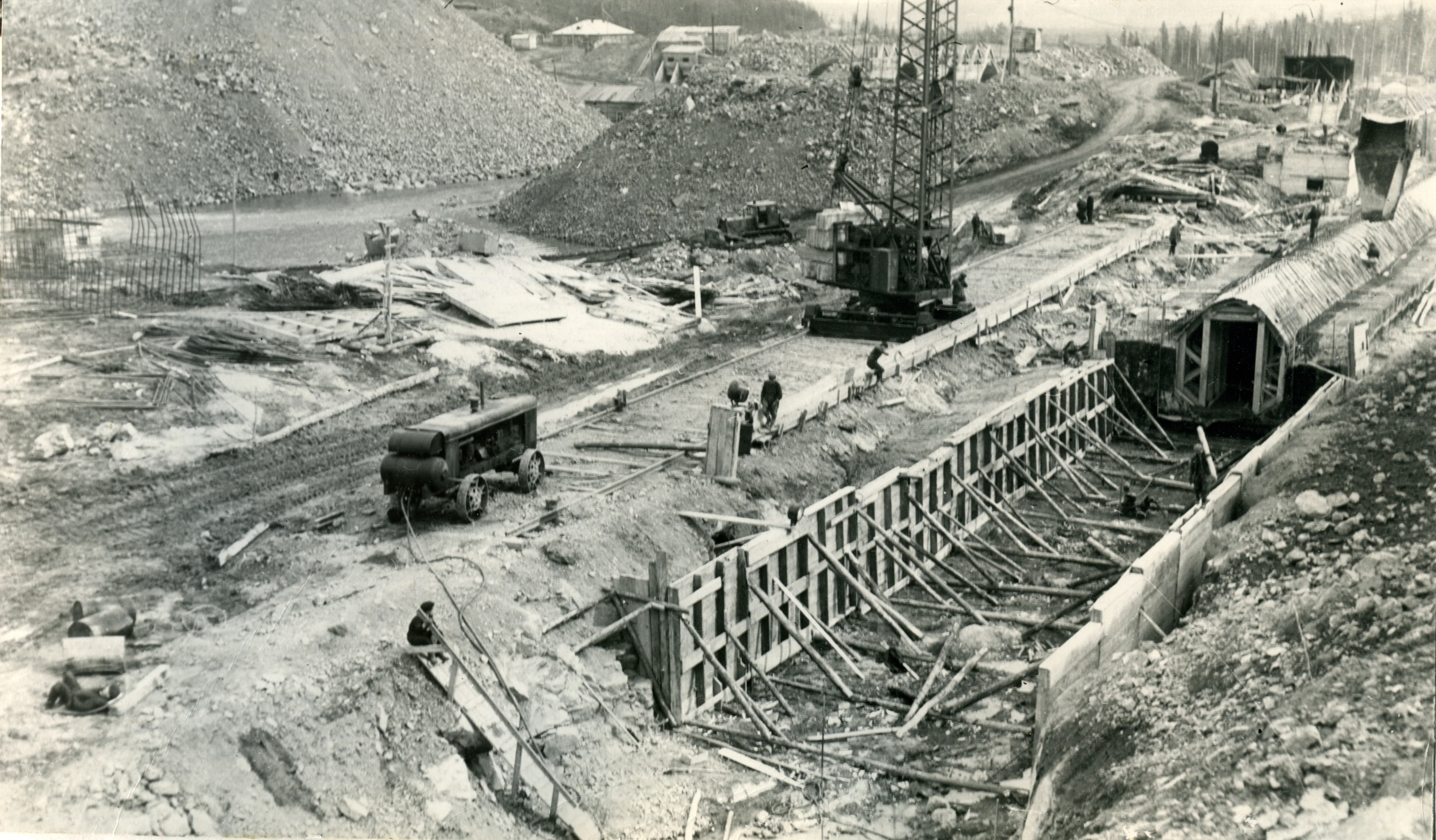1961 год. Нижне-выйская плотина. Строится донный водоспуск.