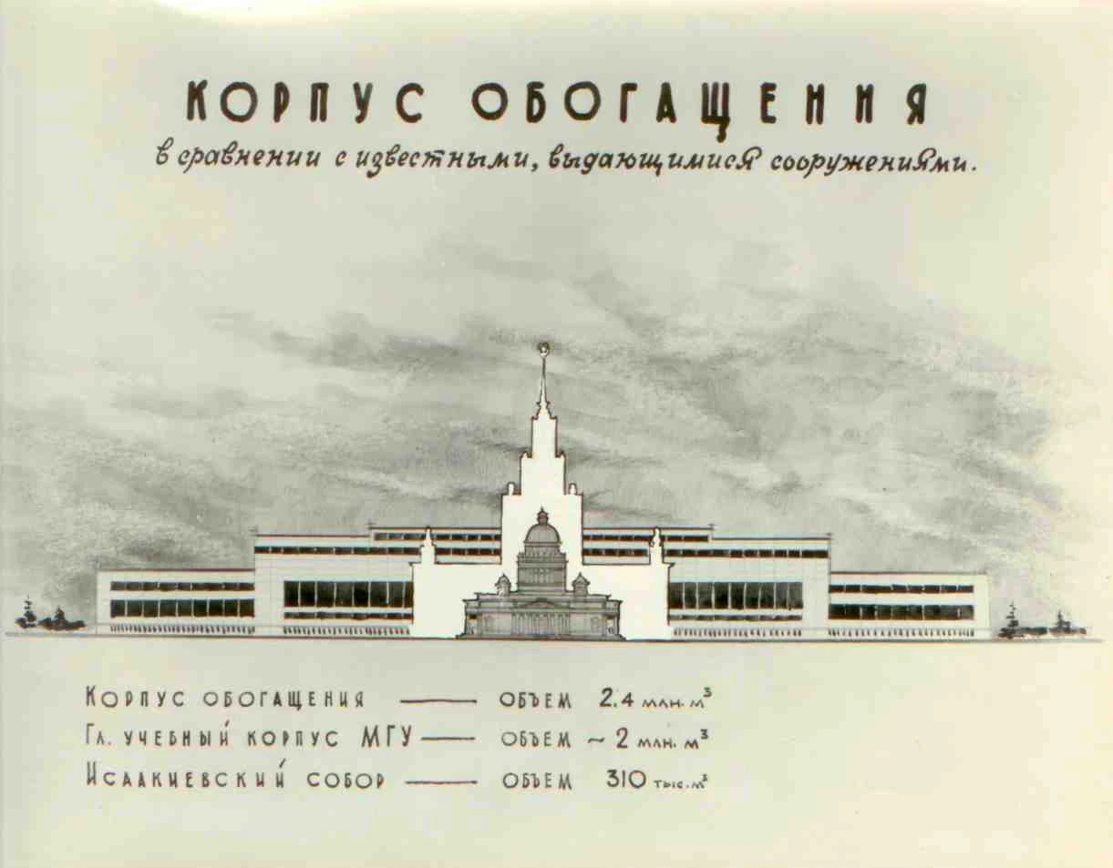 Качканарский ГОК. Корпус обогащения в сравнении с известными выдающимися сооружениями. 1963г.