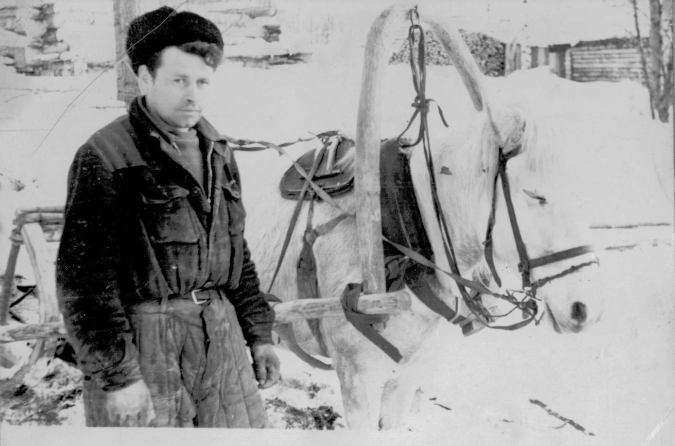 Качканарская ГРЭ. Конный двор Конозаводчик Кальсин Г. 1947