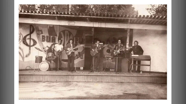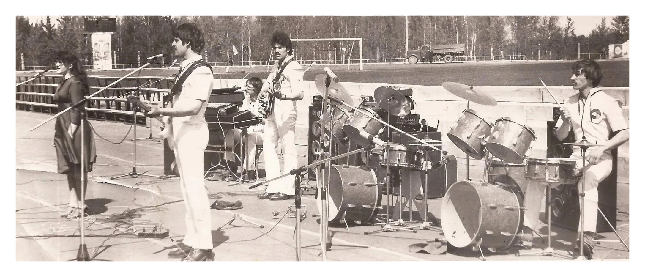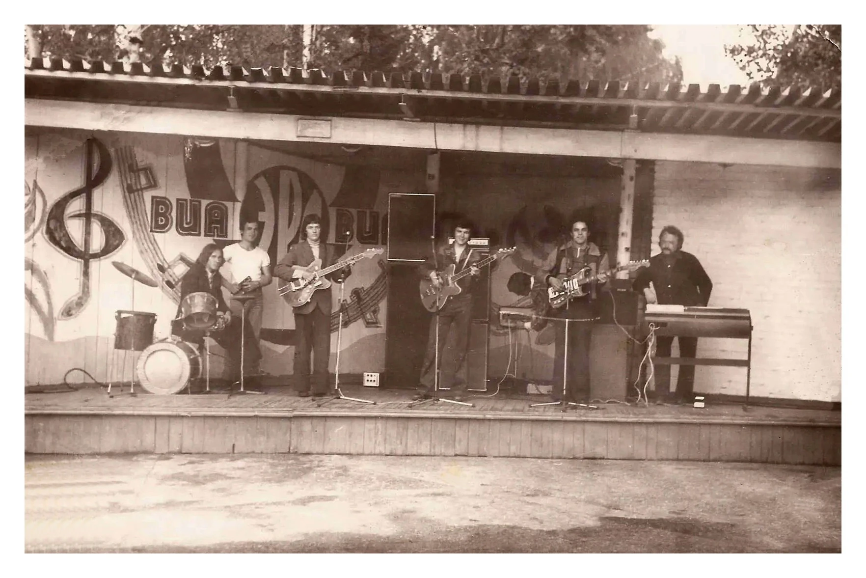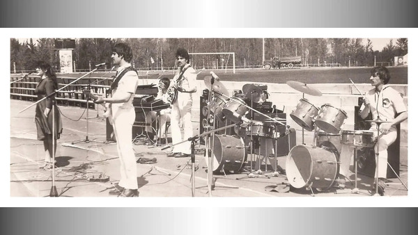 Танцплощадка в парке "Строитель". ВИА ЭРА - руководитель В.И.Мандрыкин. Качканар. 1980-е. Из фото Сергея Костарева. Из архива Ивана Канисева
