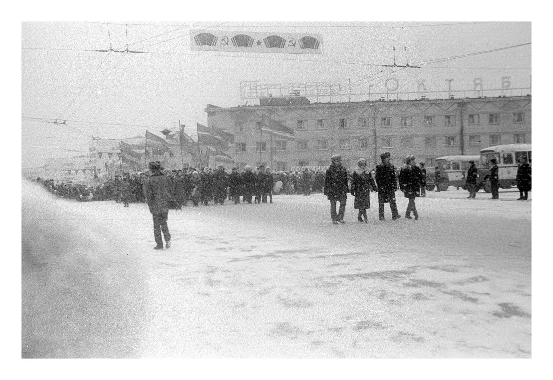 7 ноября - День Великой Октябрьской социалистической революции. 1980-е годы. Качканар. Площадь у здания горкома и горисполкома. Из архива Ивана Канисева