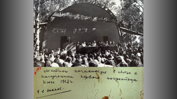Митинг качканарсцев в связи с получением первого концентрата. июнь 1963г