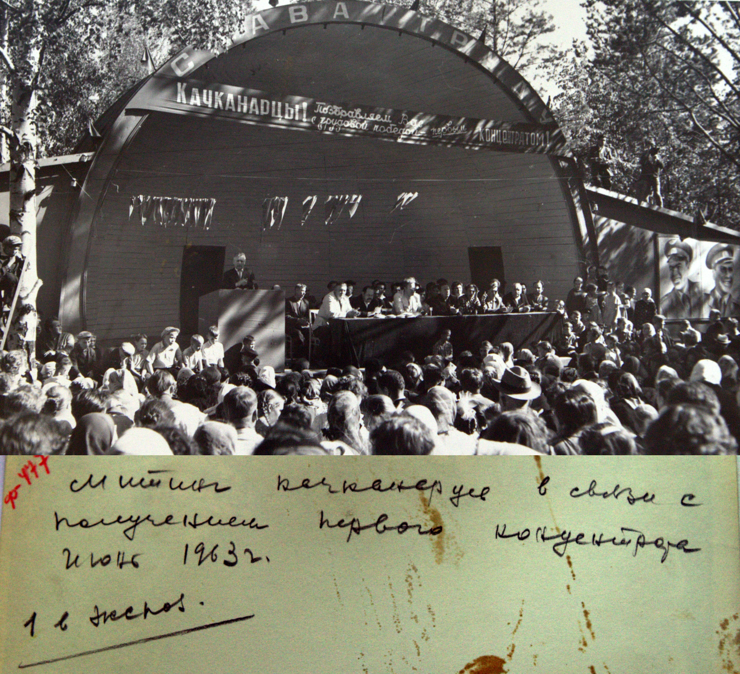 Митинг, посвященный выпуску первого концентрата. 1963 год. Качканар. Парк Строитель. Из архива Ивана Канисева