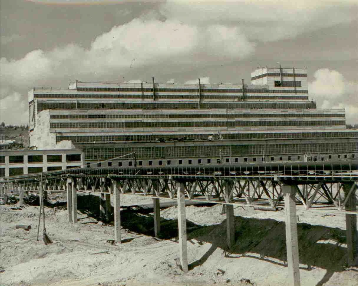 Корпус обогащения в стадии завершения строительства первой очереди. 1963г