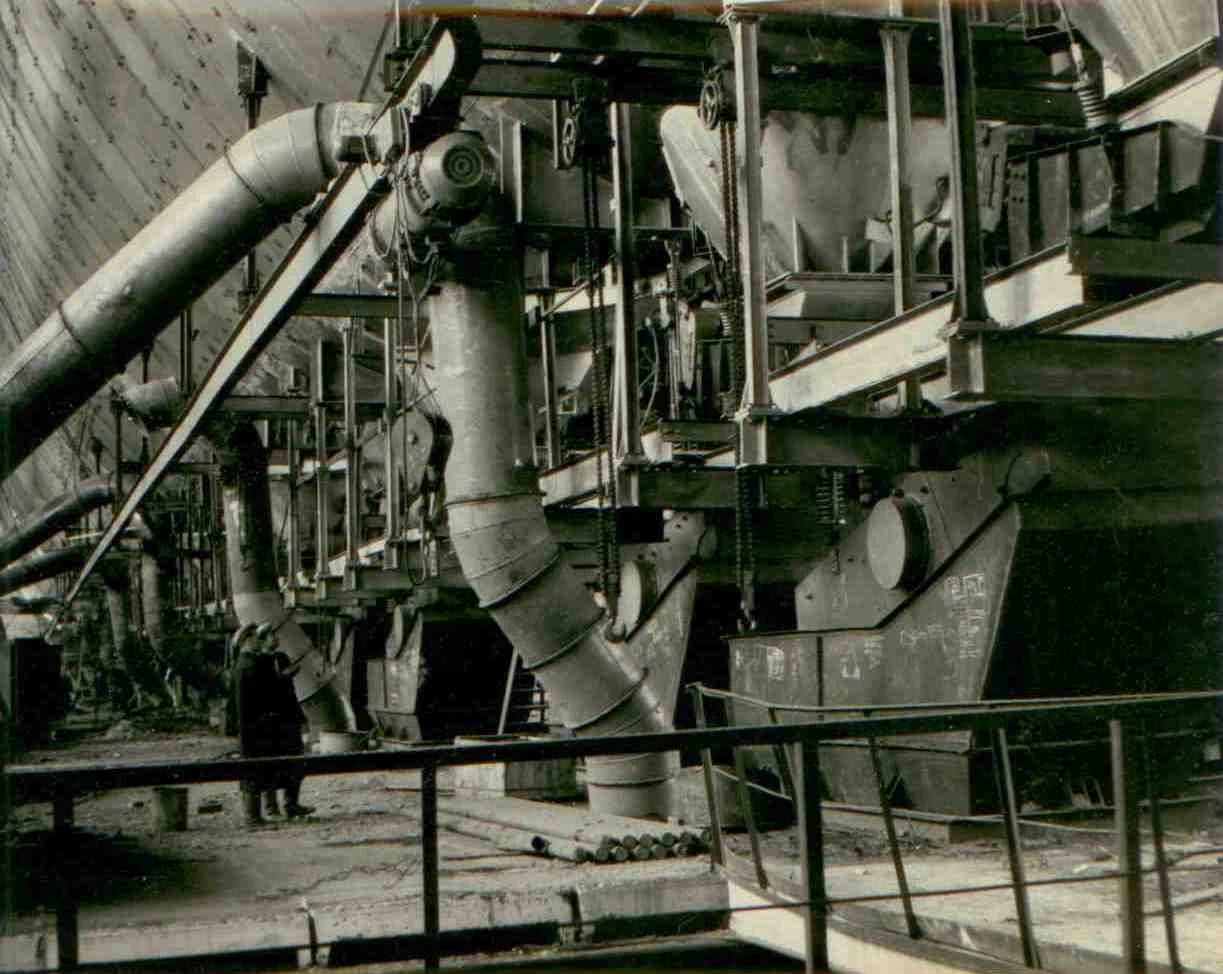 Общий вид в пролете грохотов главного корпуса. 1963г.