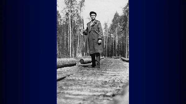 Качканарская ГРЭ. Буровая вышка старшего бурового мастера Медведева Ф.С. 1949г