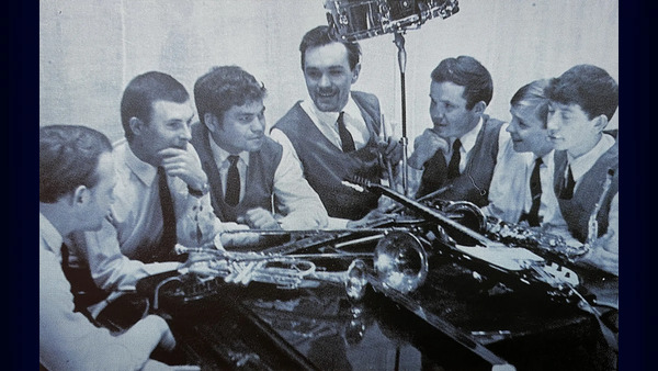 Качканар. ВИА Эра-69 (????), Виктор Абашкин (труба), Юрий Шпаньков (тромбон), Слава Огибенин (ударные), Сергей Голомидов (сакс), Александр Прядильщиков?, Владимир Лазарев (гитара). Слева направо. 1970-е годы. Из архива Ивана Канисева