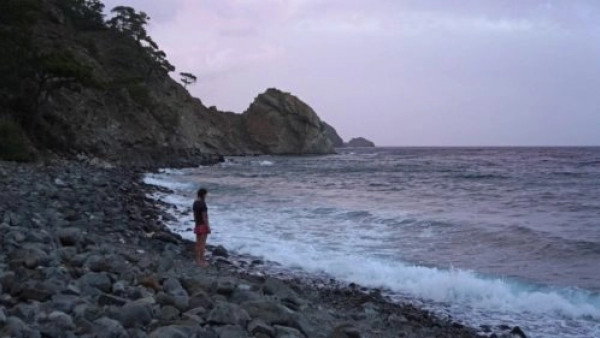 Ирина вычёсывает из прядей волос густую средиземноморскую тьму. Она сидит на камне после купания, словно ундина. В её зрачках отражается пламя костра. Она улыбается, молчит и не моргает.