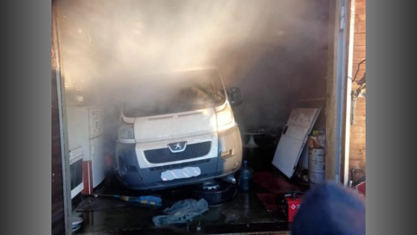 На место происшествия немедленно выехали два отделения пожарных-спасателей. Огнем были охвачены имущество в гараже и автомобиль «Peugeot Boxer».