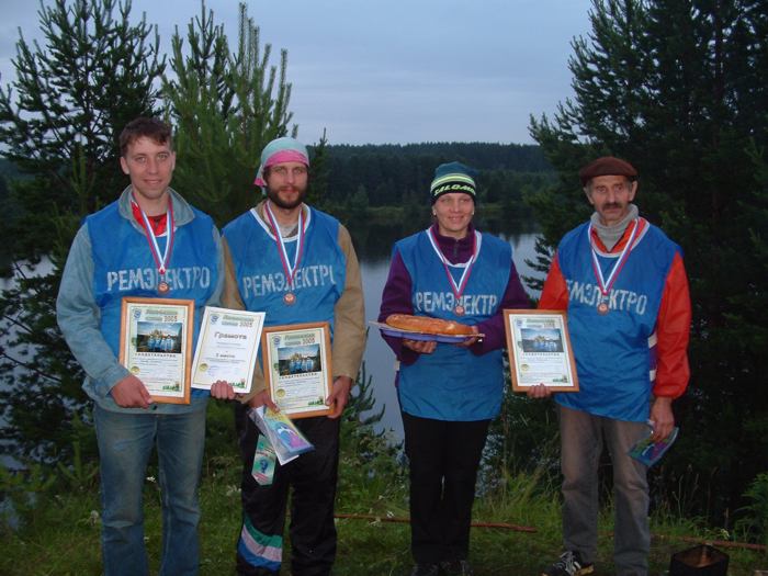 Соревнования по экстремальному туризму под Исом и его окрестностях завершились благополучно, Команда "Ремэлектро" Логинов В.Ф. Тишкин М.В. Поспелова Л.В. Ягонов Д.А. пришла 3 из 19, придти лучше было просто нереально, соревноваться любителям с мастерами ето как против тяжеловеса юниора выпускать. Наши были на высоте. Старт в пятницу в 20.00 в первом часу ночи пребежали в лагерь, в 4 утра снова старт и до финиша. Сплав, всяческие препятсвия, скипятить полтора литра воды за 10 мин (уложились за 7.5), скушать червяка, пройти полтора километра босяком, или соорудиить замену башмаку:) кроче весело было. Результат наших просто потрясающий, можете себе представить из 19 команд с последнего этапа стартовало только 8!! вобщем остались в живых только ПРОФИ...