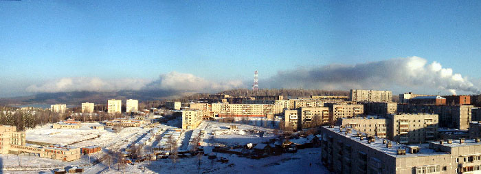 2007-03-12 02:01 DjentelmВосточный ветер одевает на красавицу промышленные кудри.КомментарииMpak1 раз такое вижу. сдается мне всетаки там облака. просто кажется что дым :)Башуров В.В.Mpak#1: Может и дым... Хотя бы наполовину. Это панорама, как следствие - широкоугольные искажения и кажется, что дым поворачивает.galogenРедко в Качканаре восточные ветра дуют. Дым заканчивается примерно над 5а-5. Дальше облака идут.