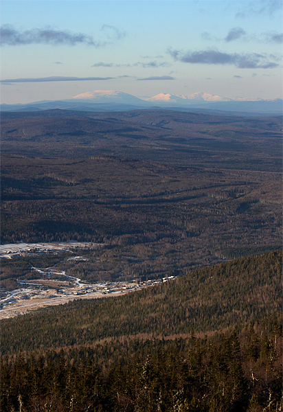 Косьвинский и Казанский камни, если смотреть с Качканара, должны закрывать вид на Конжаковский, да плюс еще 5 "бугорков" по 900-1000 над уровнем, расположенных в аккурат между ними. Интересный ракурс. Где же это?