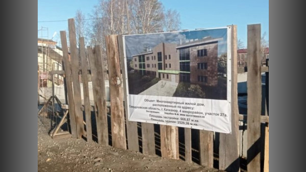 На заборе, который огораживает место строительства, размещён паспорт объекта. Это будет многоквартирный жилой дом площадью 2 529 кв.м. Застройщик — ИП Зарубин В.И. Сроки строительства в паспорте объекта не обозначены.