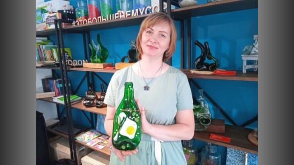 Так называет свои работы из гнутого бутылочного стекла тагильская художница и педагог Наталья Наумова. В день открытия экспозиции она провела в экодоме мастер-класс по изготовлению сувениров из битого стекла в технике фьюзинг.